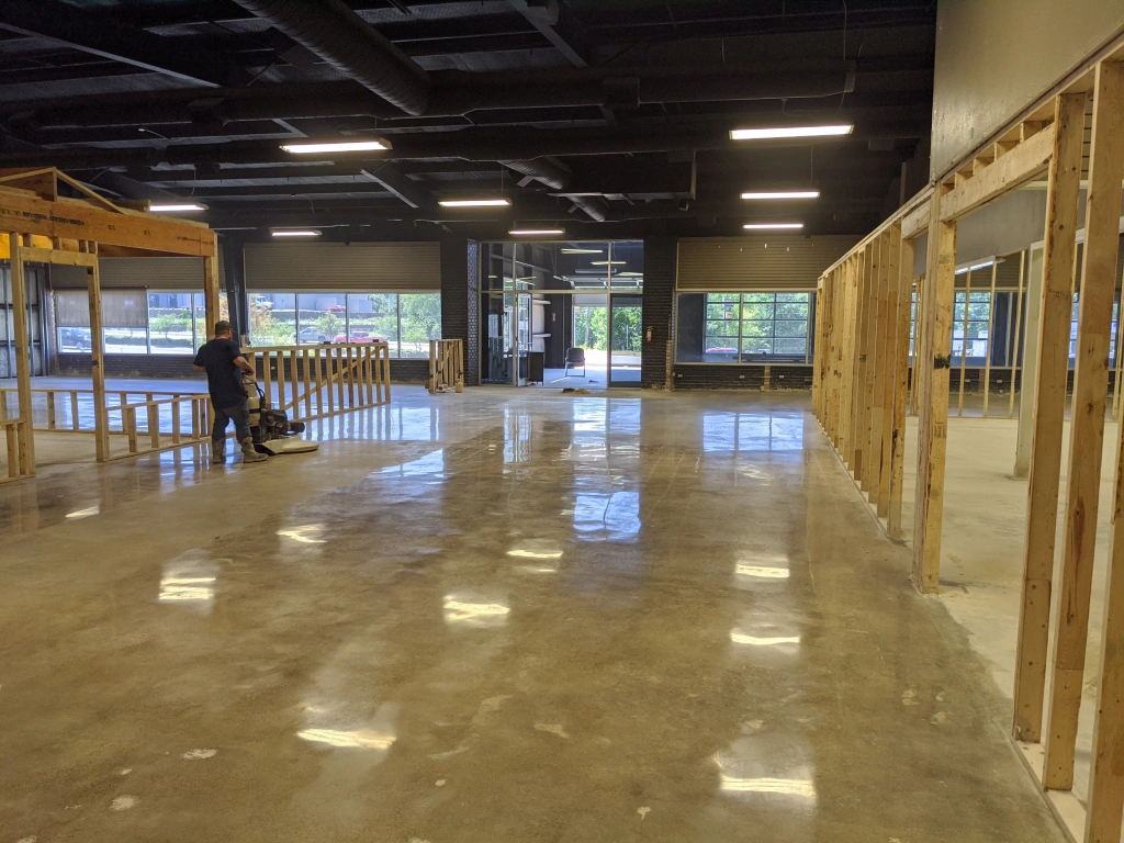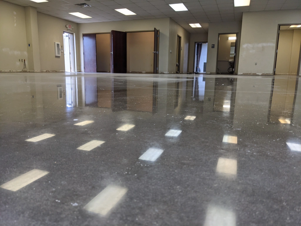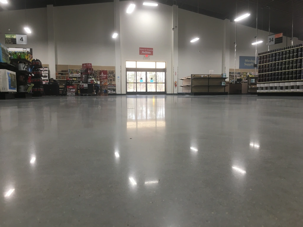 Polished concrete is a process of mechanically honing concrete through a series of grits to achieve a high gloss finish.